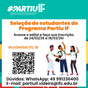 Inscrição: Levar os documentos pessoais e histórico escolar do ensino fundamental diretamente no registro acadêmico do IFC para fazer a matrícula.